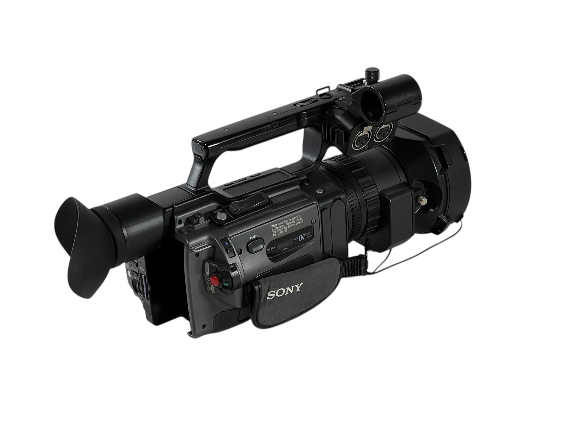 Fully functioning and tested. Very good cosmetic condition with clean optics. Records in DVCAM and MiniDV (DV) formats on tape with good manual control and professional audio options.